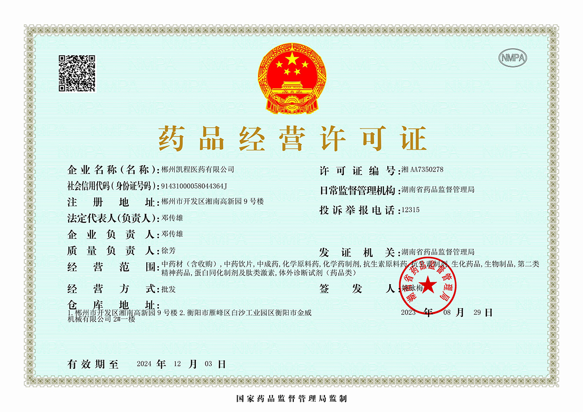 醫療器械經營許可證:湘郴藥監械經營許20170003號